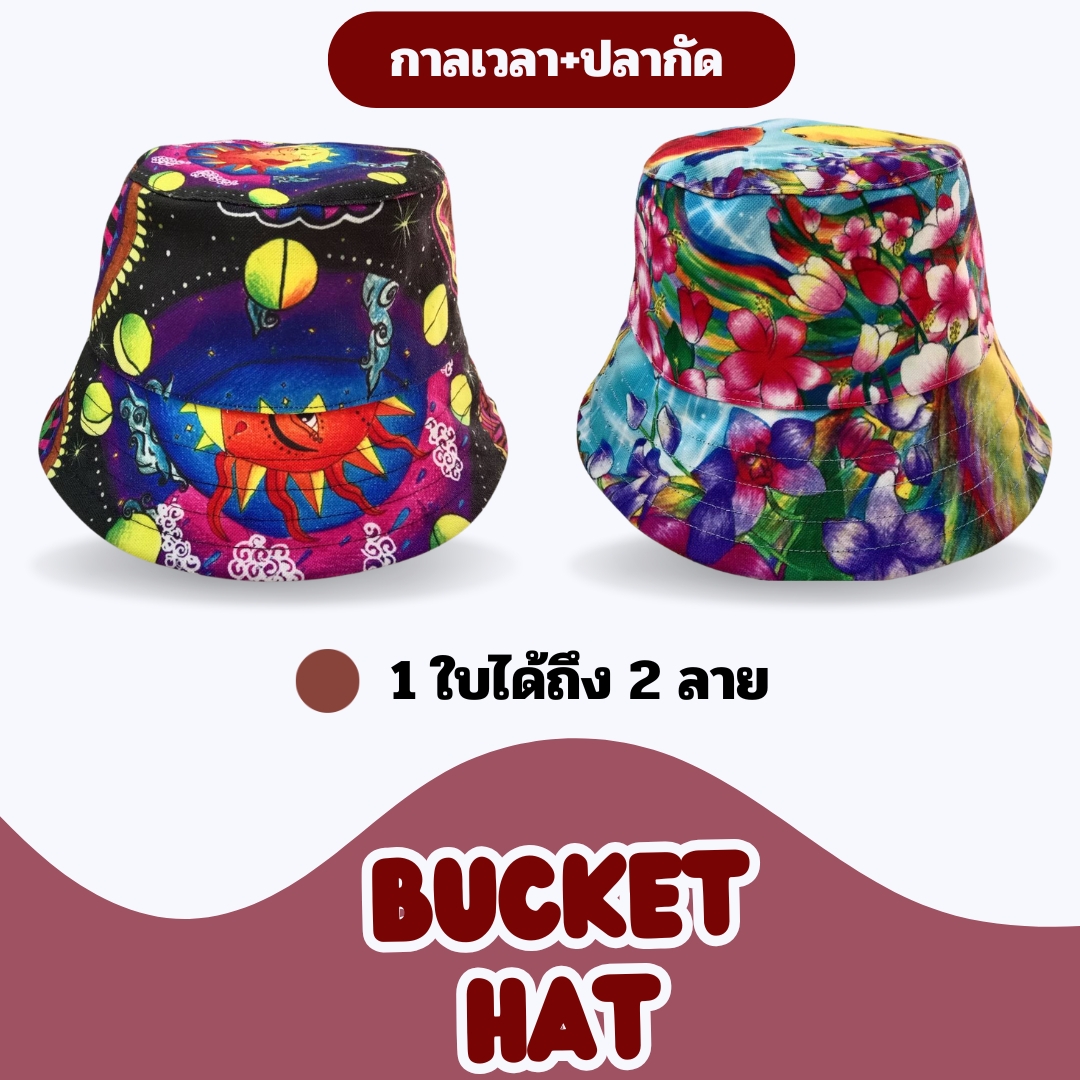 หมวกบัคเก็ตยักษ์หรรษา ลายกาลเวลาและลายปลากัด